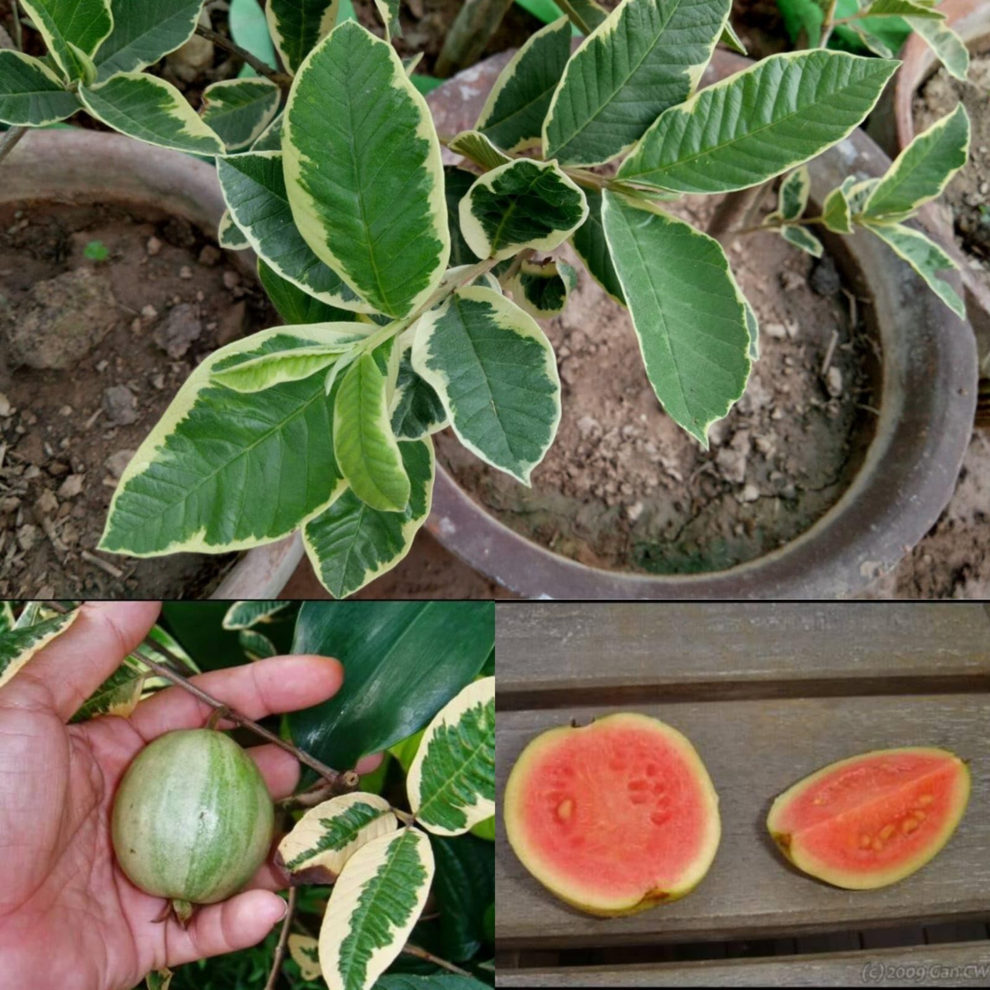 | Common Name | Variegated Guava, Thai Striped Guava, Guayaba Variegada, धारियाँ वाली अमरूद (Dhaariyon Wali Amrood), பட்டை கொய்யா (Pattai Koyya), വരിഗേറ്റഡ് പേരയ്ക്ക (Variegated Peraykka), |